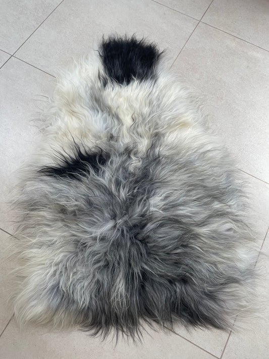 Natural Grey (Mixed White & Black) Long Haired Icelandic Sheepskin Rug